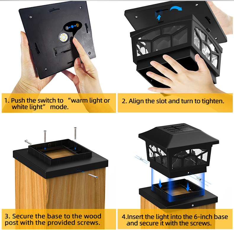 Il-Modalità Doppja Solar Post Cap Light Solar Garden Light ta 'Landsign għandha sistema intelliġenti sensittiva għad-dawl, barra qawwija reżistenti għall-ilma, u faċli biex tinstalla, adattata għal dekorazzjoni tarzna, ġnien, eċċ. Żewġ modi tad-dawl, tista' tagħżel liberament id-dawl favorit tiegħek. Il-Modalità Doppja Solar Post Cap Light Solar Garden Light jista 'jiġi mmuntat fuq il-ħajt b'viti pprovduti f'sekondi, l-ebda kejbil jew wajer meħtieġ.